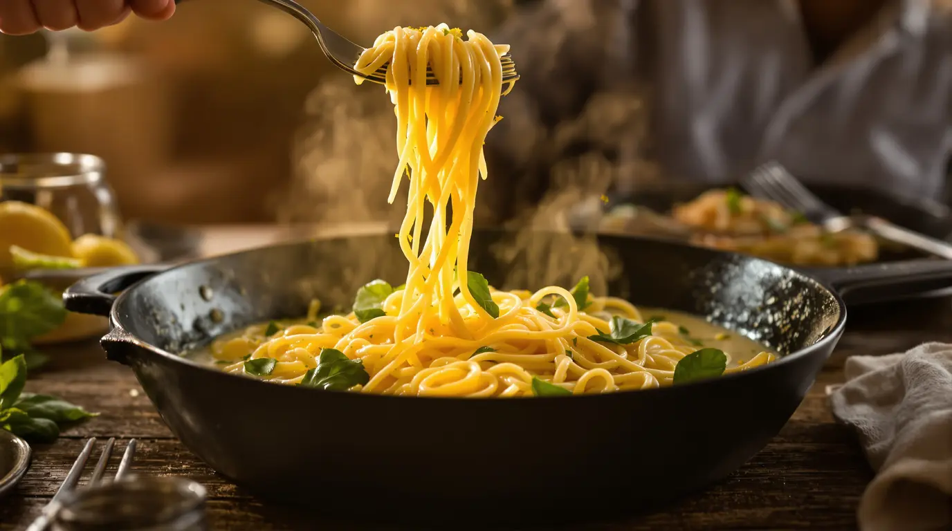 Vous connaissez ces plats qui ne paient pas de mine au départ, puis qui changent tout dès la première bouchée ? Ces pâtes-là font exactement ça. Elles sentent bon le citron, la crème et le basilic, et en quinze minutes, elles donnent à la table une ambiance douce, presque inattendue.