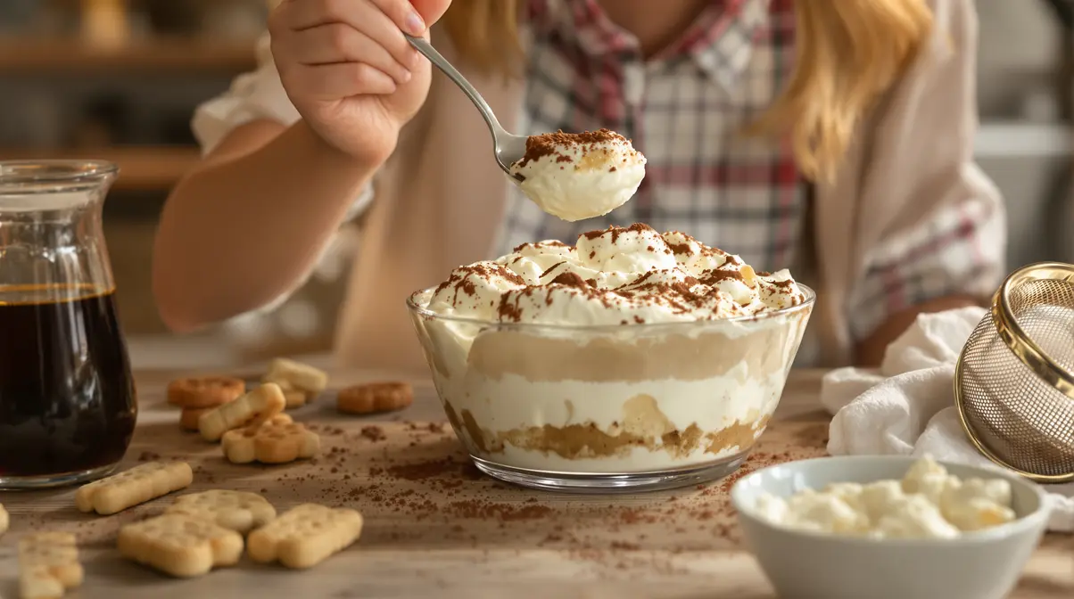 Ne trempez pas trop les biscuits dans le café. Deux secondes suffisent souvent. S’ils sont trop imbibés, le dessert perd sa tenue. Et pour le cacao, ajoutez-le juste avant de servir si vous voulez garder une belle finition.